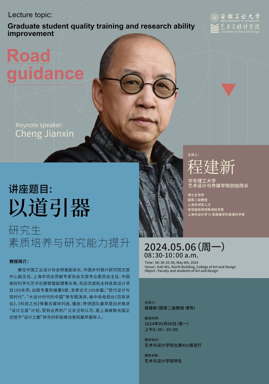2024-04讲座题目: 《以道引器:研究生素质培养与研究能力提升》主讲人: 程建新(国家二级教授 博导) 报告时间: 2024年5月6日(...