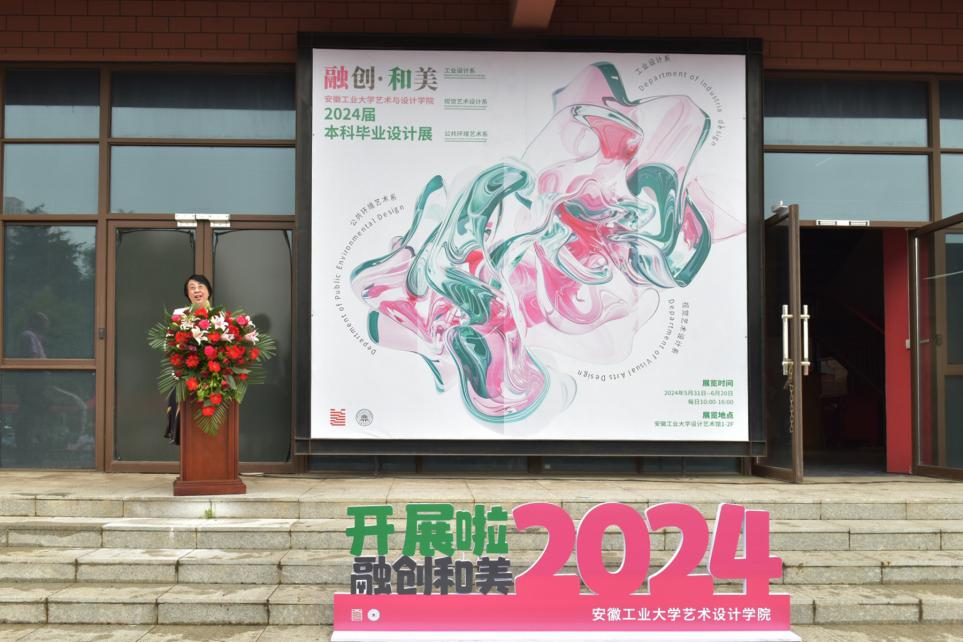 2024届本科生毕业设计作品展在秀山校区设计艺术馆广场盛装开展。校党委常委、副校长顾明言,马鞍山市委宣传部副部长、市文明办主任陈学明,休宁县人民政府副县长李文喜,“当涂民歌”国家级非遗传承人陶小妹,北京小米科技有限公司小米生态链设计部工业设计负责人、院工业设计专业2004届校友谢迎春,南京大美天第文旅投资集团有限公司副总裁孔德银等26家企业家代表出席仪式。宣传部、研究生工作部、团委、教务处、国际交流与合作处、创新创业色动漫