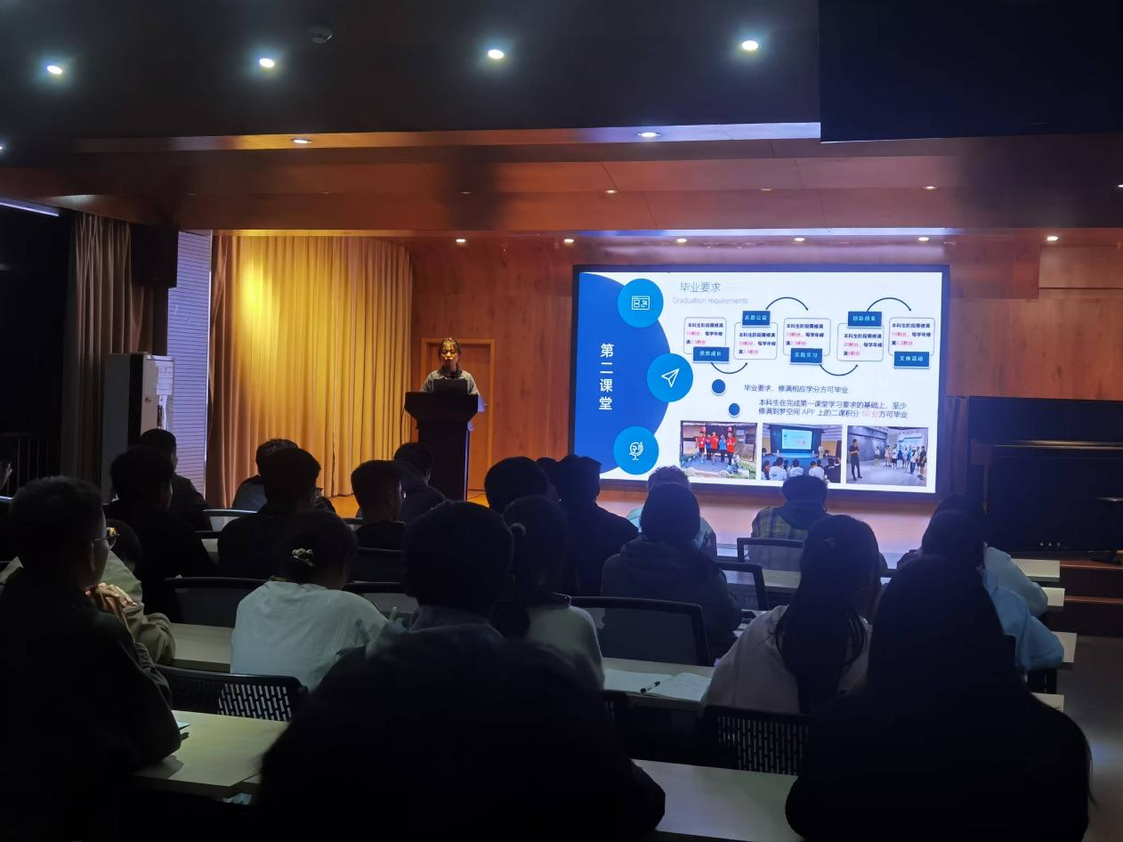 近日,色动漫 在艺设楼北401成功举办了第二课堂政策宣讲会。大一新生辅导员汪正第二课堂负责人邵星以及全体2024新生参加了此次大会