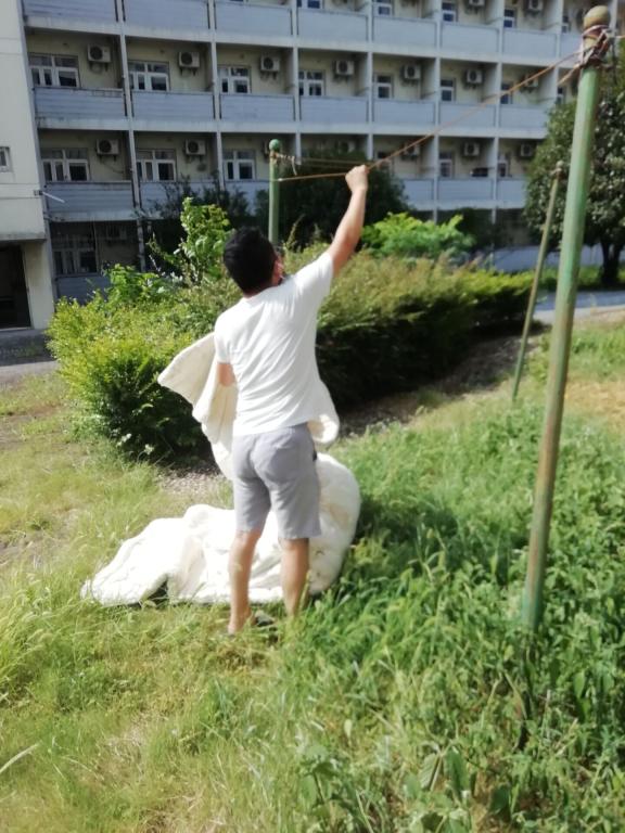 因此次新冠肺炎疫情影响,我校低年级本科生定于8月27日至29日分批次错峰返校,临近学生返校之际,对于已近230天未回校的学生们来说,返校成为最大的期盼,宿舍也成为最大的牵挂,同时学生宿舍卫生、安全也是学校老师们关心的问题。由于今年梅雨季节较长,处于一楼和二楼的宿舍被褥等物品发霉现象较为严重,为解决同学们的顾虑,满足学生的需求,同时更好地做好返校准备工作,近日,在征得学生同意后,色动漫 辅导员李亚飞和宿舍管理员王连华一起去学生宿舍进行通风、清洁、晾晒发霉的被褥。
