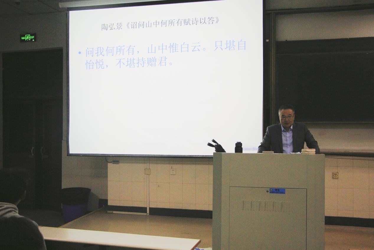 讲座伊始,魏教授举例不同作家依据雾霾进行的各种文学创作,语言诙谐幽默,极富讽刺意味,让学生们感受到庄重而伟大的文学作品也具有风趣的一面,充分引起了学生们的兴趣。随后,魏教授展示了一些我们耳熟能详的“半名句”。例如“天才是百分之一的灵感加百分之九十九的汗水”,后半句“但那百分之一的灵感是最重要的,甚至比百分之九十九的汗水都重要”。告诫同学们阅读文学作品一定要全面完整的理解,培养辩阅能力。从古到今,纵览一些名家巨作,往往都被烙上了时代的印记,淋漓尽致地折射出人生的缩影,读这类书籍,大都需要丰富的阅历与文化底蕴。最后,魏教授强调:“读文学名著,要由易到难,先读通俗读物,再读文学书籍”。读书就是领略世事沧桑,倾听灵魂呼唤,洞察心灵隐私。