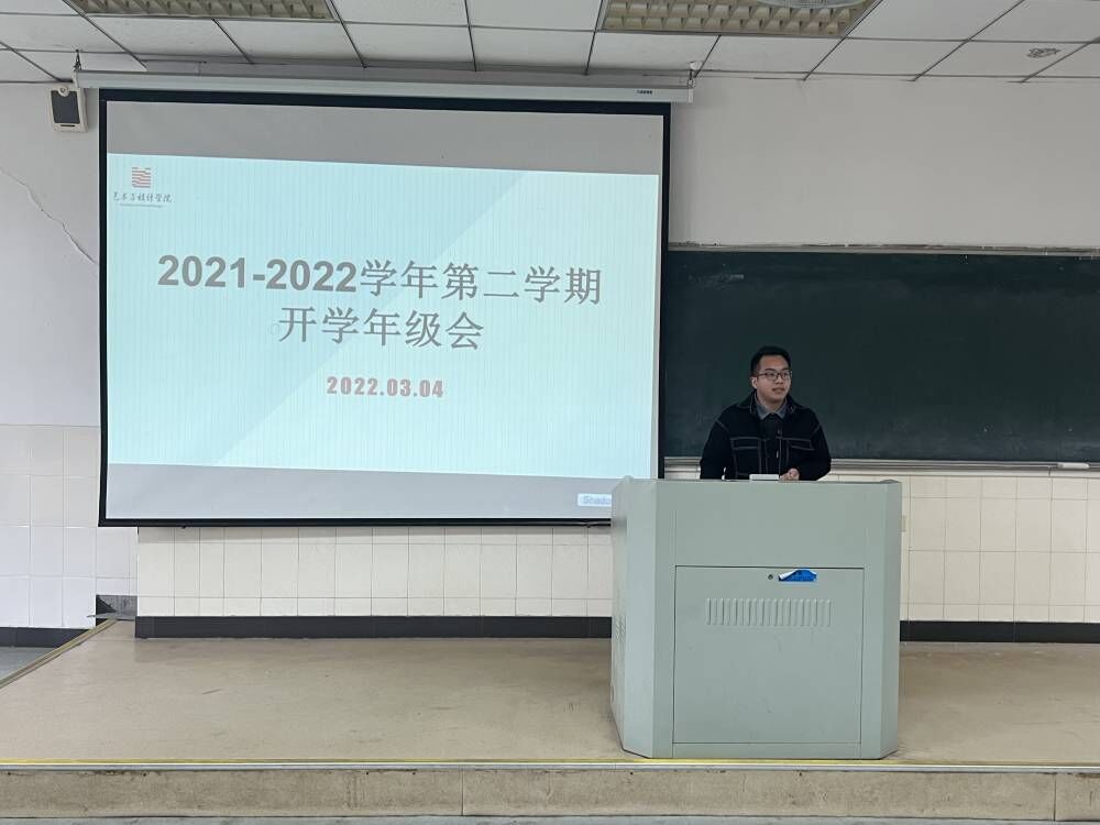 针对2021级,年级辅导员赵颖首先简要阐明工作调整,向同学们介绍2021级新辅导员罗凡,并对全体同学表达殷切期望,希望同学们珍惜四年时光。接着,年级辅导员罗凡从安全角度再次强调在校学生必须严格履行请销假制度;讲述近期校园诈骗案例,提醒同学们提高防范意识;从学业角度分析各班级成绩及年级整体学习情况,表扬优秀同学,提醒挂科同学认真复习,在新的一学期开启新的学习状态;从未来规划角度鼓励同学们坚持积累,把握学习、提升能力的机会,厚积薄发,为未来做好铺垫。