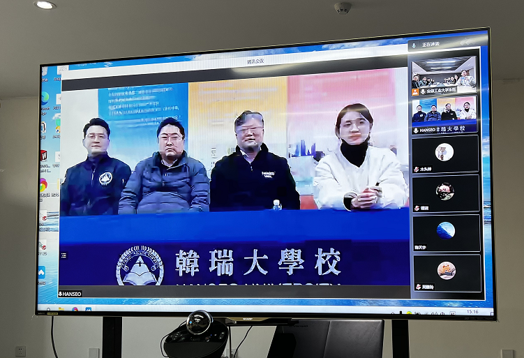 与中国的两所高校在中国教育部申请的国际化合作办学案例进行着重讲解。金镇宇教授随后对韩瑞大学与我校在后疫情时代国际化合作项目可行性进行分析,根据自身多年国际合作办学工作经验,认为韩瑞大学航空运输机械融合设计专业与我校工业设计学科申请中国教育部合作办学项目有较大可行性。