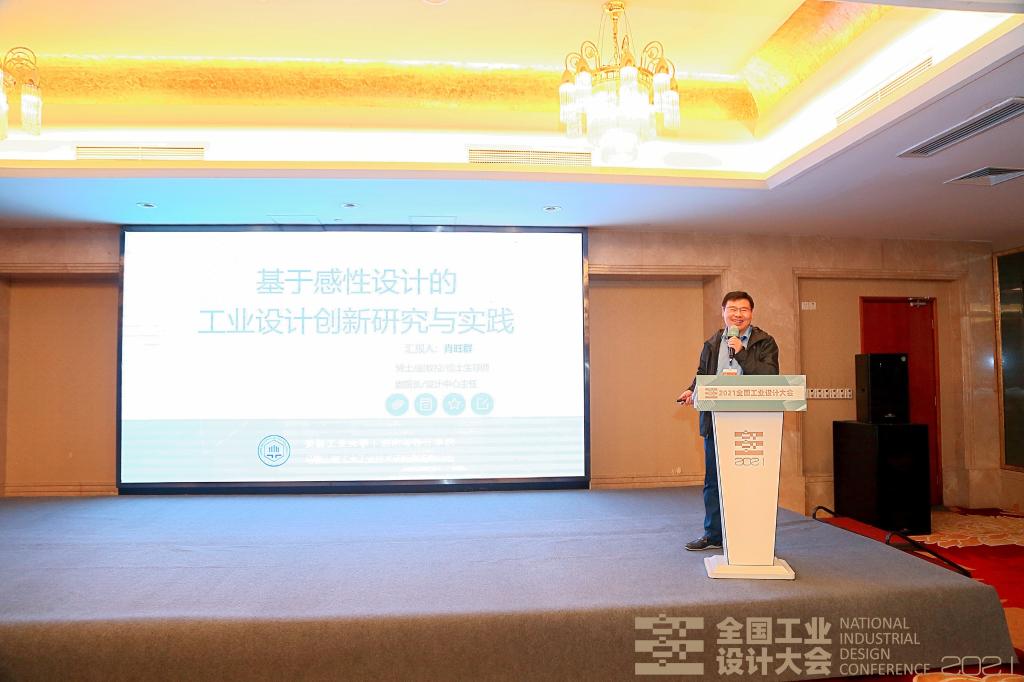 副院长肖旺群受邀在“设计科学”主题论坛作学术报告。他以“基于感性工学的工业设计创新研究与实践”为报告主题,主要分享两大方面内容,一方面是技术创新与设计创新双轮驱动下的产品设计实战案例解析,其中包括牛奶装箱机器人、码垛机器人、六自由度协作机器人、破拆机器人、凿岩钻机、土壤取样钻机、消防机器人等产品从设计到落地的全流程阐释;另一方面是结合生理信号的智能工业机器人感性设计方法研究,工业机器人设计开发研究中,单纯凭借工业设计师的感性思维及创造力进行设计,或者过分强调情感认知领域数据量化研究的介入,都相对片面,展开以上两方面有效结合的研究,探索一种为工业机器人设计创新提供艺术创造力与科学支撑的设计方法。同时,他还将安徽工业大学及色动漫