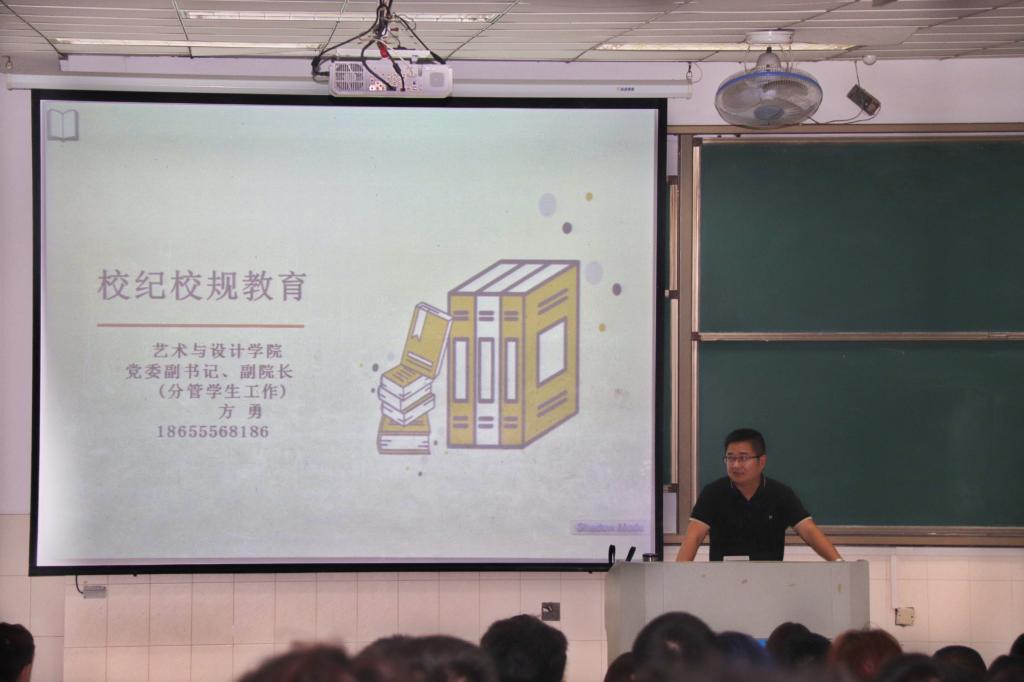 讲座上,方勇就校规校纪实施意义、《普通高等学校学生管理规定》(教育部41号令)安徽工业大学实施办法、学生的义务权利以及学生奖励与处分等四个方面向同学们做了详细解读。他提到“国有国法,家有家规”,遵守校规校纪是每位学生提高综合素质、培养规矩意识以及树立安徽工业大学大“家”意识的必要举措和最低要求。会中,方勇结合学生手册说明了主要校规校纪条例及其对应处理办法,并列举了常见违规违纪行为,阐明了利害关系,告诫新生要不断提高自我素质以及辨别能力,树立正确的“规矩”观,加强底线意识,养成良好习惯。