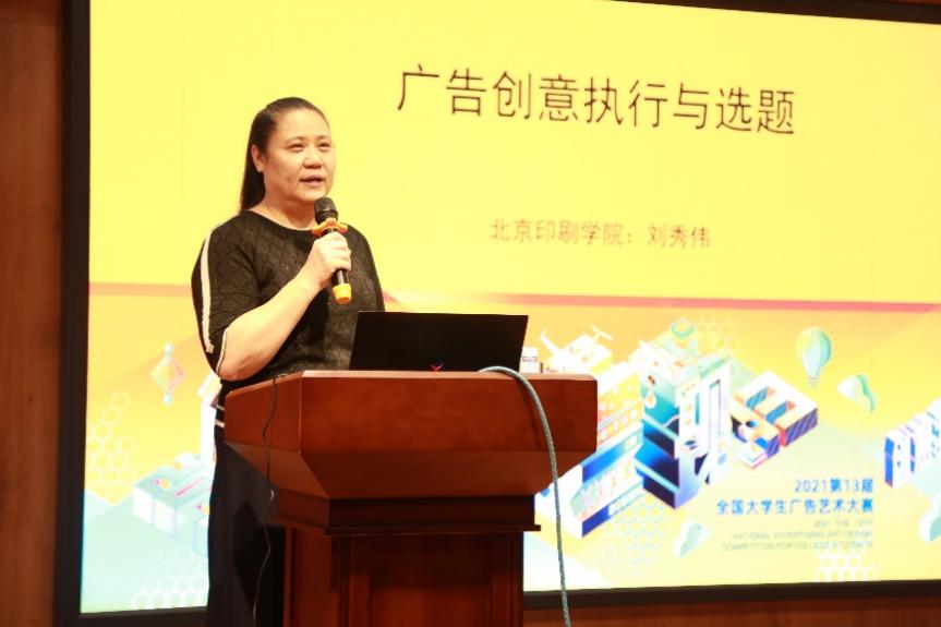 张翔教授在“致胜之道——从大广赛获奖作品讲创意之道”专题报告会中,通过往年大量的国赛获奖作品,从平面、广播、短视频以及动画的角度分别阐述了进入国赛的作品独特的视角和亮点;何红艳教授在“创意有道”专题报告会中,从创作题材的选取以及如何把握住创作思路和关键点的角度展示了创意的重要性;刘秀伟教授在“广告’奖’道理”专题报告会中,分析了广告创意方法和精神,通过大量的获奖作品分析了广告创意如何执行,并且详细讲解了2021年大赛主题。