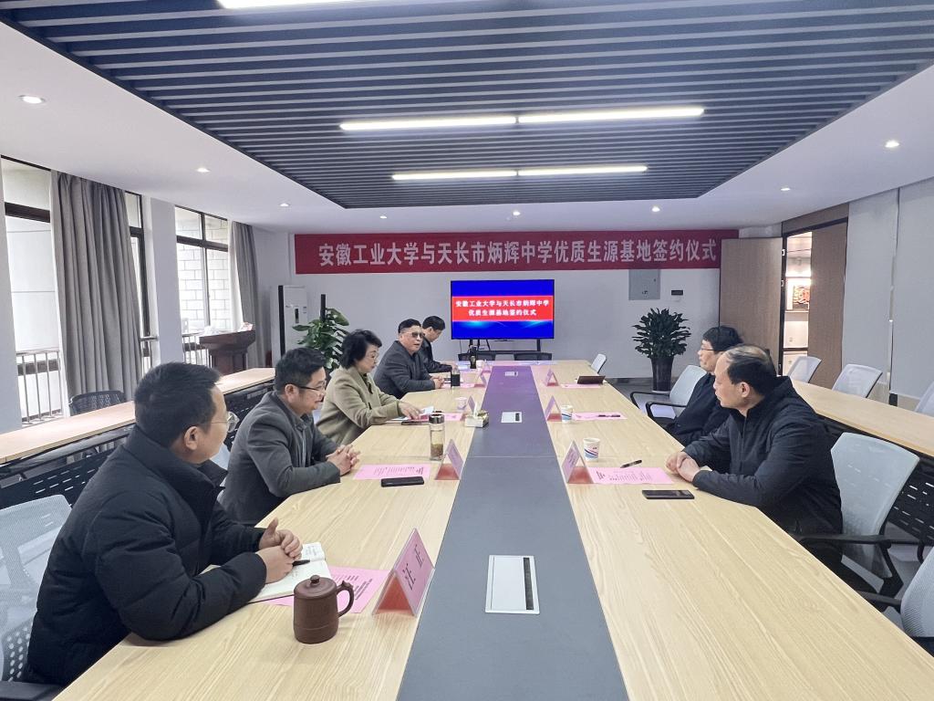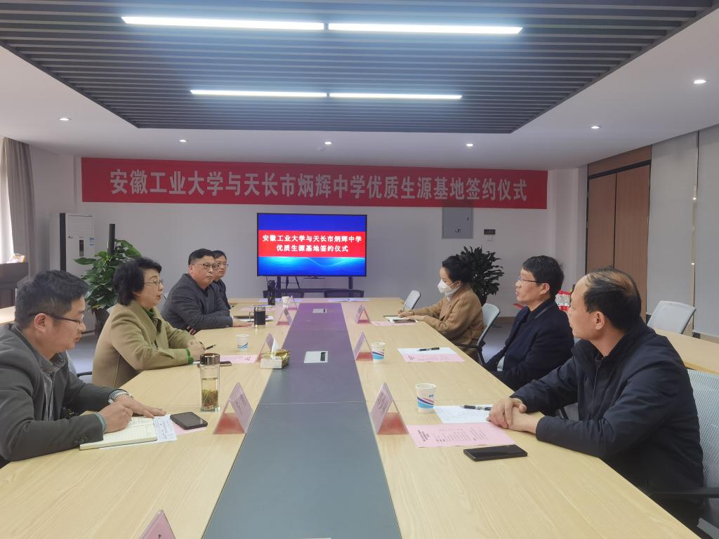 党委副书记方勇和炳辉中学党委副书记郭少林共同在优质生源基地建设合作协议上签字。顾明言副校长代表学校向天长市炳辉中学授予了“优质生源基地”牌匾。 (撰稿:秦艳秋 审核:罗凡 汪正 方勇)