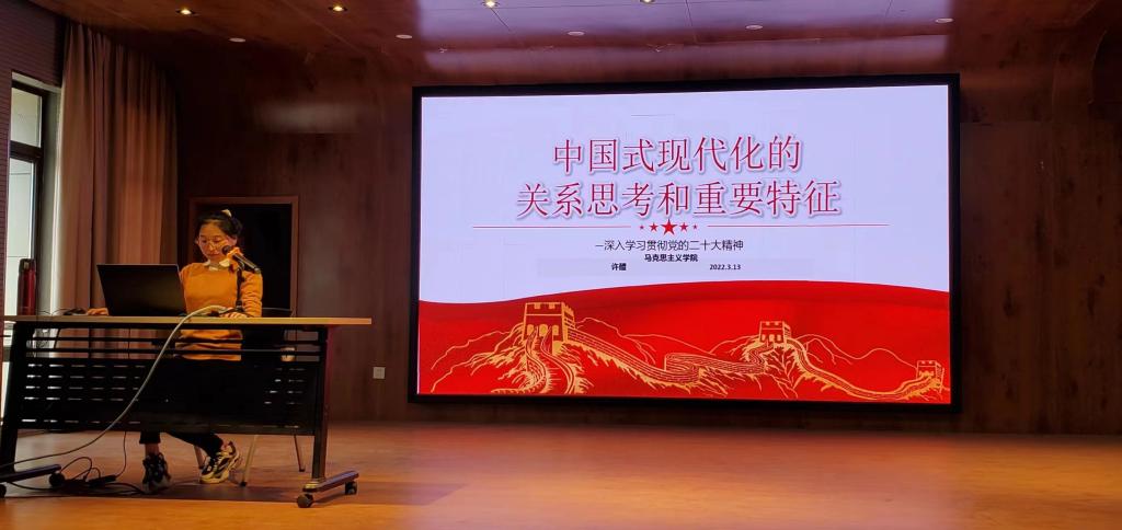 宣讲会上,许醴作了题为《中国式现代化的关系思考和重要特征》的专题宣讲。她以中国式现代化与中国的现代化是什么关系、中国式现代化与中国式现代化道路是什么关系、中国式现代化与全面建设社会主义现代化国家是什么关系三个问题为切入点,为大家详细解读了中国式现代化的一般性和普遍性、中国式现代化的特殊性及中国式现代化的基础性战略支撑,并结合当前国内外形势,从收入、科技、产业、城市化、金融等方面阐释了中国式现代化强国的经济特征。