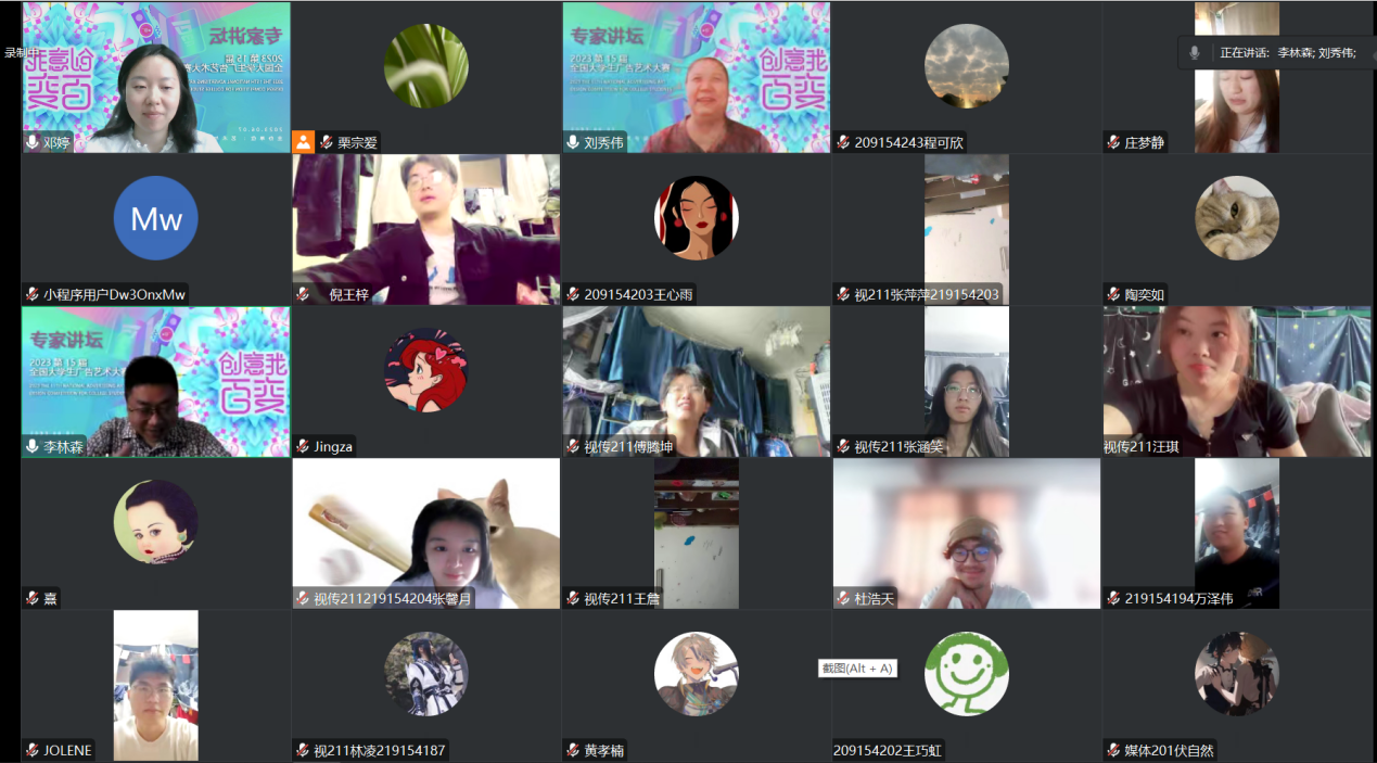 相关教师和本科生、研究生参加,会议由李林森老师主持。刘秀伟教授凭借自身丰富的竞赛指导和广告创意设计经验,向同学们分析了广告创意的执行和方法,并对色动漫