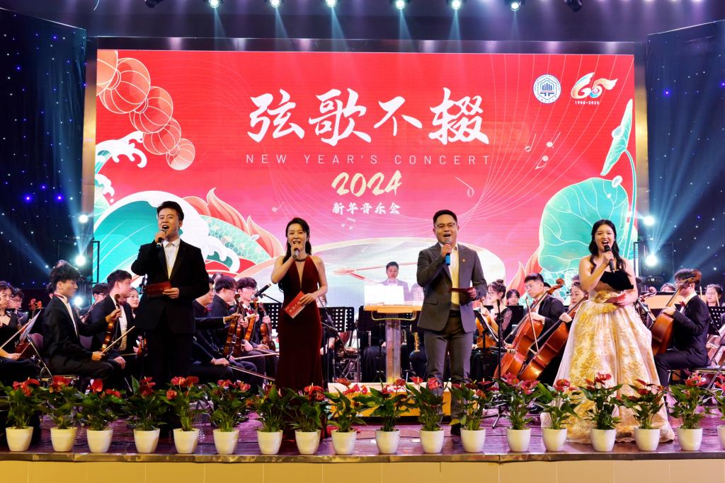 承办,党办校办、党委宣传(统战)部、团委协办的美育教学成果展暨“弦歌不辍”2024新年音乐会在秀山校区新大学生活动中心浓情上演。校党委书记陆林、校党委常委赵保平、校党委常委黄勇、马鞍山市公安局花山分局政委杨青、马鞍山市公安局雨山分局政委丁红华以及学校相关职能部门、色动漫