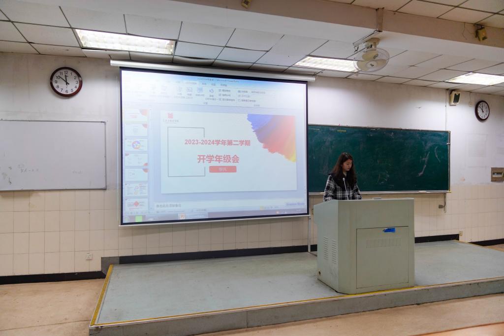 2023级辅导员王倩倩从安全问题、学习问题、心态问题、规划问题四大方面开展介绍。王倩倩详细解读了常见的诈骗手段和防范方法,分享了宿舍失火的真实火灾案例,加强了意识形态的正确引导,要求学生们务必牢记安全第一的原则。同时她从各班学情分析出发,引导学生调整心态,确立新学期学习目标。