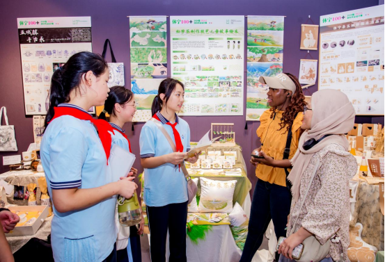 展览中,中外学生就作品展中的中国传统文化和地方物产设计理念进行了热烈的交流,通过领队老师介绍,学生们感悟到了色动漫