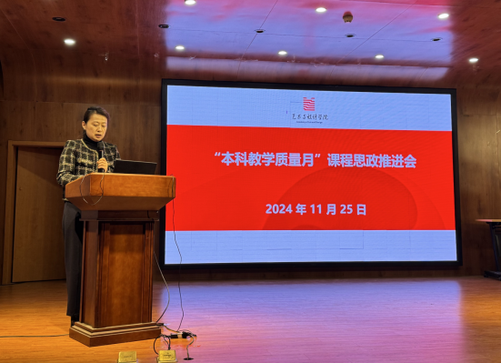 本学期课程思政建设情况,进一步明确了下一阶段在各专业、各类课程全面推进课程思政建设的思路和举措,并就在教案中落实课程思政点提出具体要求。视觉艺术设计系谢茜老师做课程思政建设交流汇报,她从自身专业和课程方向出发,分享了《形态构成1》中“色彩知识”的思政教学设计,在教学方法上,强调从手绘到机绘,再到AI生成技术的结合,以提高设计效率和准确性;在教学内容上,围绕中华优秀传统文化主题进行创作,同时涵盖环境保护等概念,鼓励学生从不同角度创新思考,实现专业知识与课程思政的融合衔接。