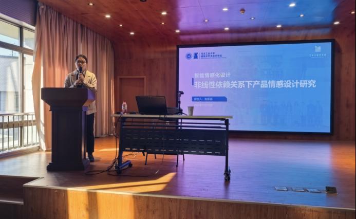 讲座伊始,张新新副教授围绕自身核心研究领域展开详细介绍。她长期致力于情感认知与计算(工业设计理论及方法)、产品情感设计(感性工学、智能设计)、文化符号再设计等方向的研究,凭借扎实的理论功底与丰富的实践经验,在相关领域形成了独具特色的研究体系。通过清晰的逻辑梳理与生动的案例阐释,张教授向在场师生系统展现了产品情感设计在新时代工业设计中的核心价值,以及跨学科融合背景下该领域的发展趋势,为师生们拓宽了学术视野。