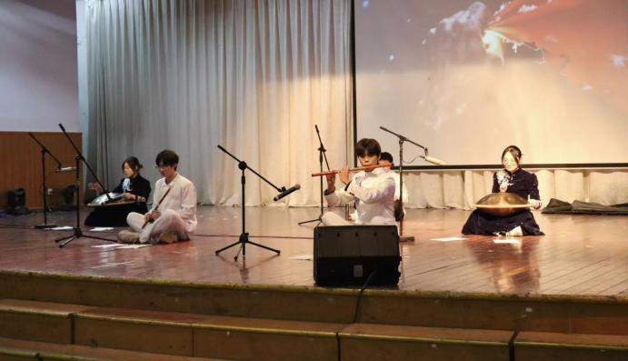 作为校园美育实践的重要载体,本次听赏会汇聚了校内民乐领域的青年才俊,以“传承经典、创新表达”为理念,精心遴选鼓乐、琵琶、古筝、二胡、竹笛、葫芦丝等多种器乐形式,十余首经典曲目与创新演绎轮番登场,全方位展现中华传统音乐的博大精深与当代魅力。