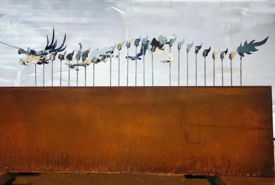 设计说明:动态公共艺术是一种在空间中可看可触的艺术表现形式,是表达广大公众审美感和审美理想的艺术。这件作品在设计上通过解构的设计手法对龙的形象进行了分解处理,在关键的结构部位重点突出龙的形象特征。从整体的设计理念来看,是艺术与科技,艺术与传统文化相结合的一次探索与实践。
