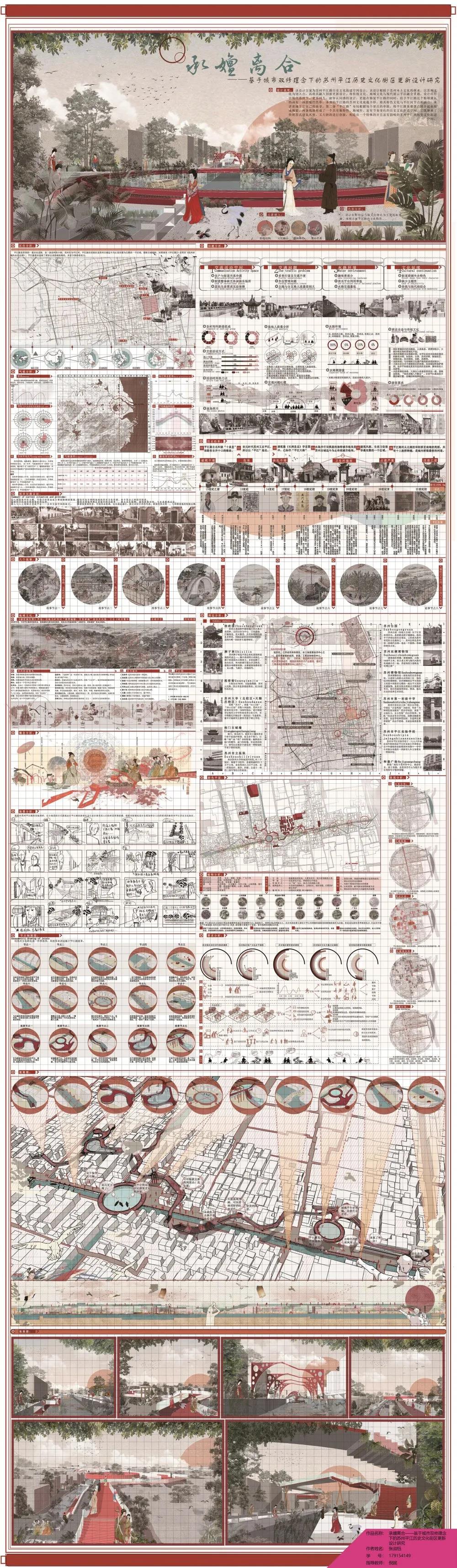 设计说明:该设计方案为苏州平江路历史文化街道空间设计,根植于苏州本土文化的继承,以苏州文化为切入点,再将其融入创新更新设计。将传统文化、地域文化与现代展示手法融会贯通,设计出符合现代苏州人和老苏州人的认同感的设计。更能在修复平江路的同时,给予平江路这个粉墙黛瓦的画布一抹温暖的色彩。