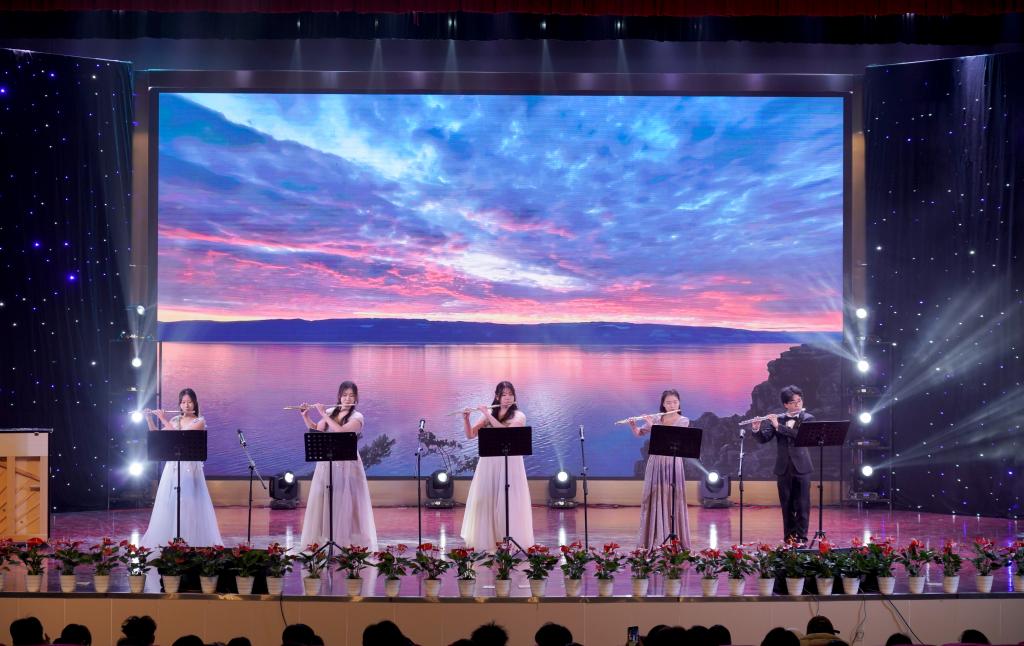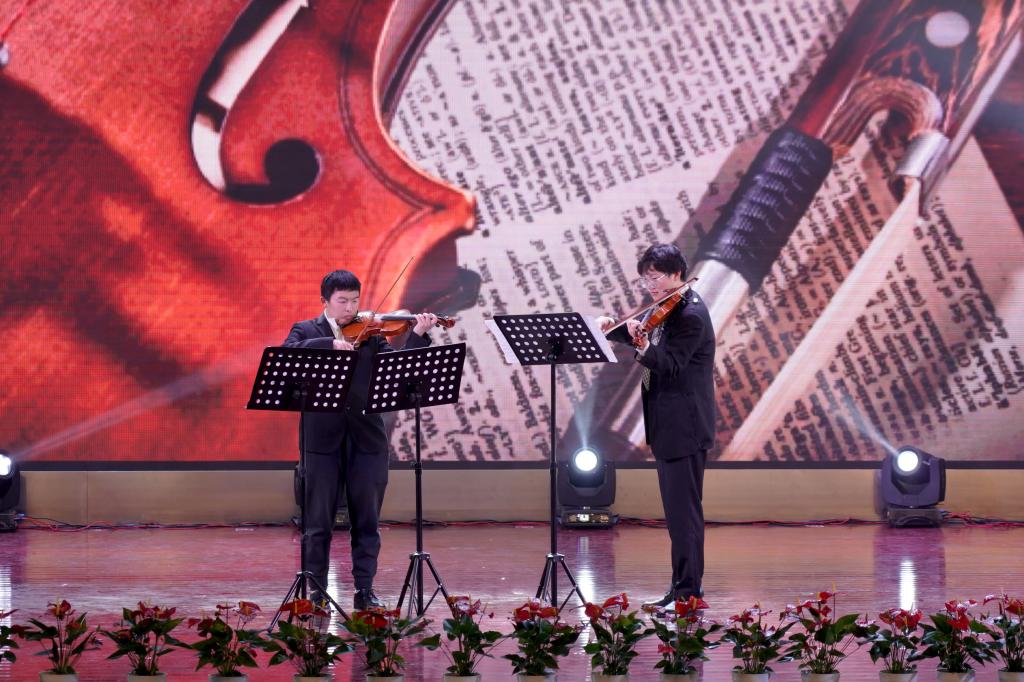 音乐会在民乐合奏《京调》中欢乐开场,将京剧曲调的韵味与民乐的独特魅力完美融合,瞬间点燃了现场气氛。随后的《阿里山之歌》又将观众带入了台湾地区那风光旖旎的阿里山,清新的旋律如微风拂面,让人仿佛置身于美丽的宝岛。小提琴二重奏《帕萨卡利亚》(亨德尔)时而低回婉转,时而高亢激昂,展现了西洋古典音乐的深邃与优雅。二胡齐奏《葡萄熟了》和《良宵》使听众们在欢快活泼和舒缓悠扬的气氛之中流转。大提琴齐奏《大鱼海棠》和《穿越时空的思念》的旋律深沉醇厚,带领观众们亲临奇幻与感动的世界。古筝合奏《茉莉花》和《市集》的旋律时而清新优雅时而灵动,让人如痴如醉。观众们在《贝加尔湖畔》的旋律中,感受贝加尔湖的神秘与宁静。《贝多芬小提琴协奏曲》第三乐章OP.61展现出贝多芬音乐中不屈的精神力量,赢得观众阵阵喝彩。《扬鞭催马运粮忙》和《姑苏行》分别展现了欢快喜庆和如诗如画的景象。管乐合奏《茉莉花》别出心裁,《梁祝・化蝶》悠扬的琴声让听众为梁祝的爱情动容。音乐会在男女声二重唱《乘风破浪再出发》中圆满落幕,歌声里饱含着对未来的憧憬与奋进的力量,激励着在场师生向着梦想勇往直前,乘风破浪。